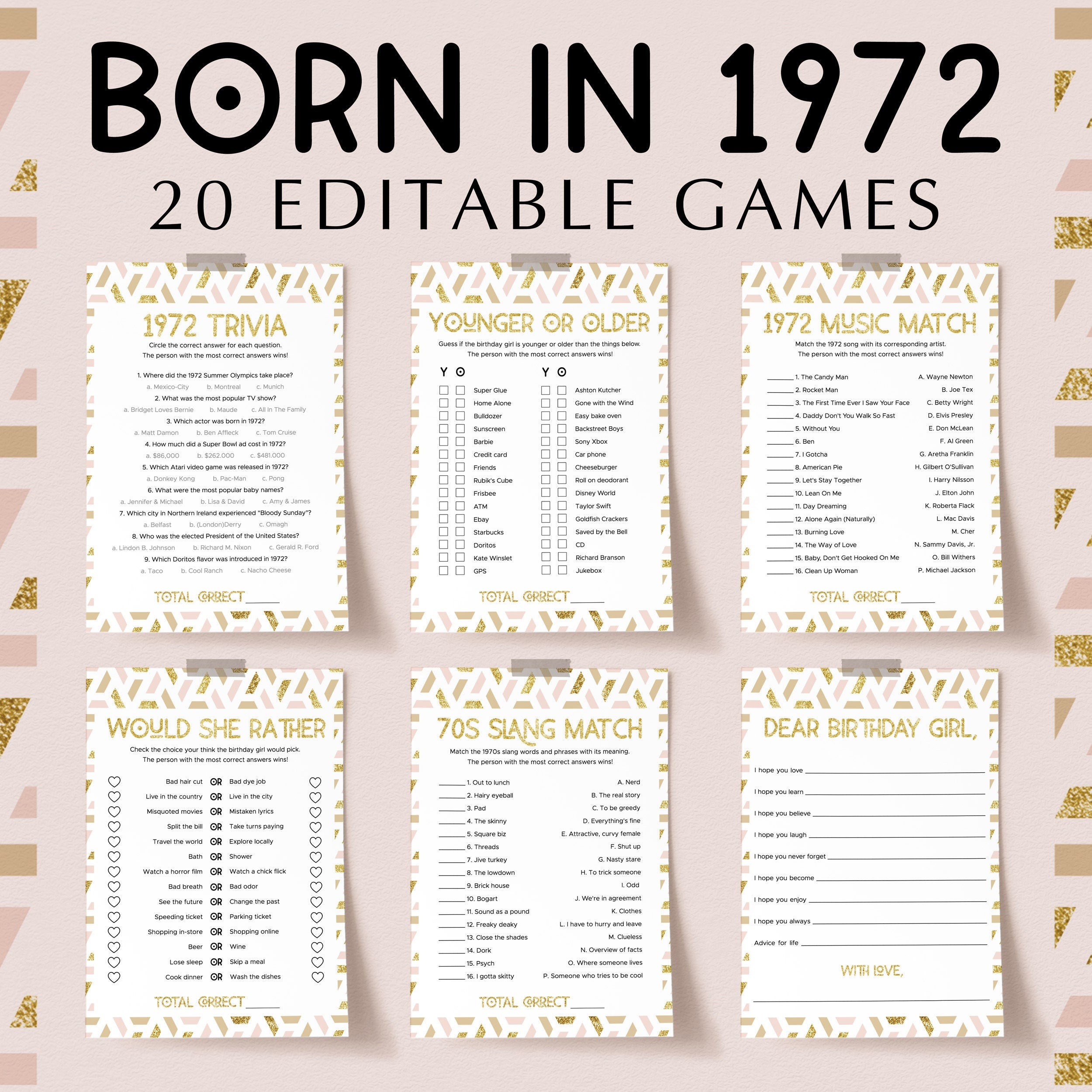 50th Birthday Games For Woman Born In 1972 Trivia Fun Facts Etsy India